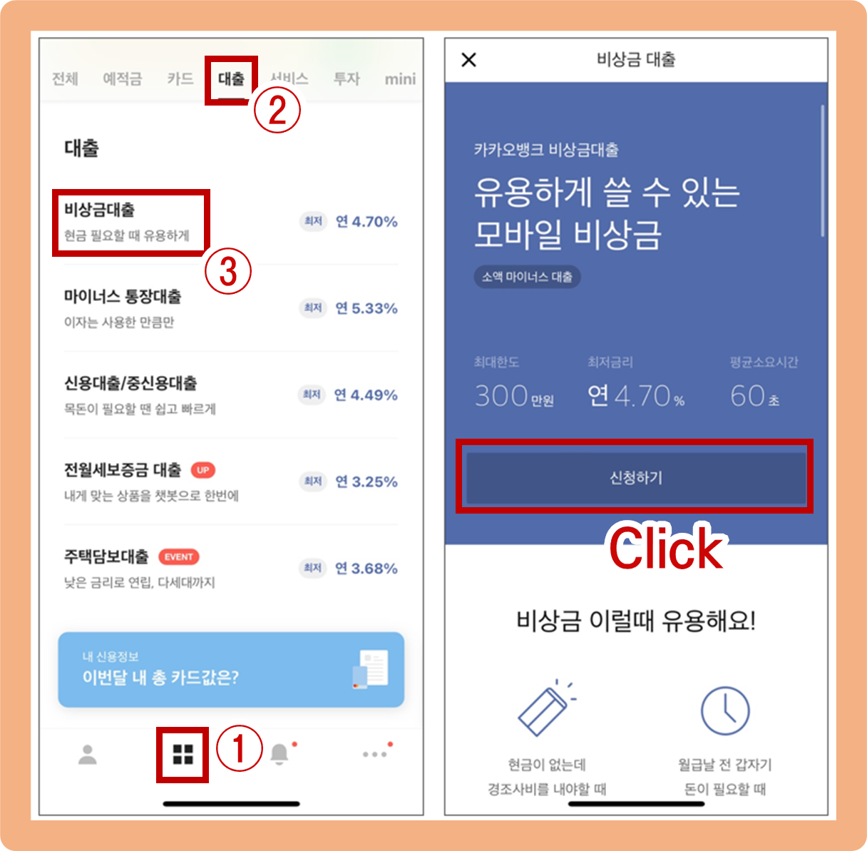 카카오뱅크 비상금대출 신청방법은? 1분만에 가능