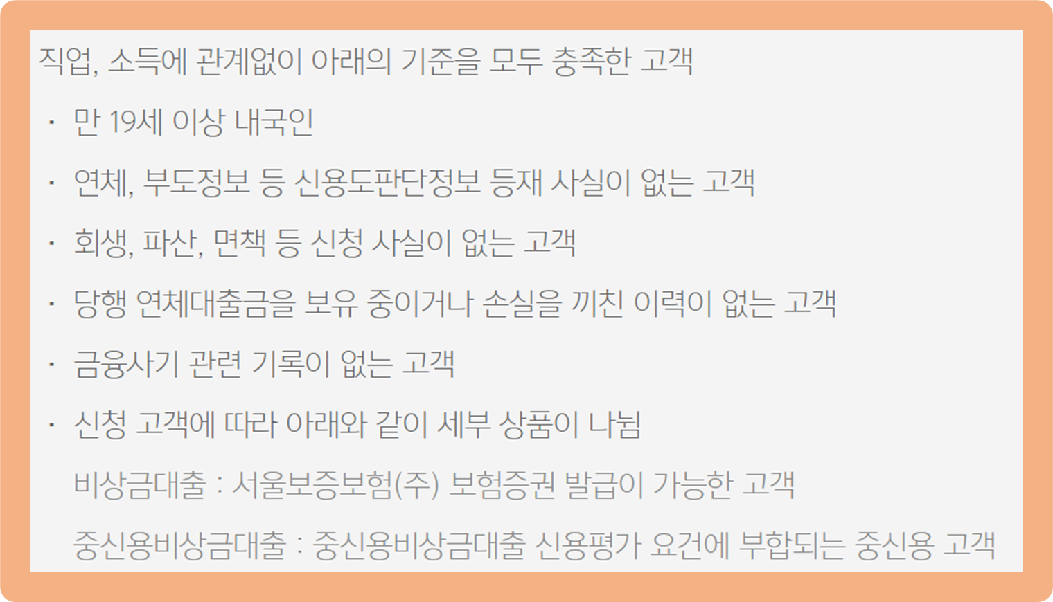 먼저 카카오뱅크 비상금대출 가입 조건이예요.