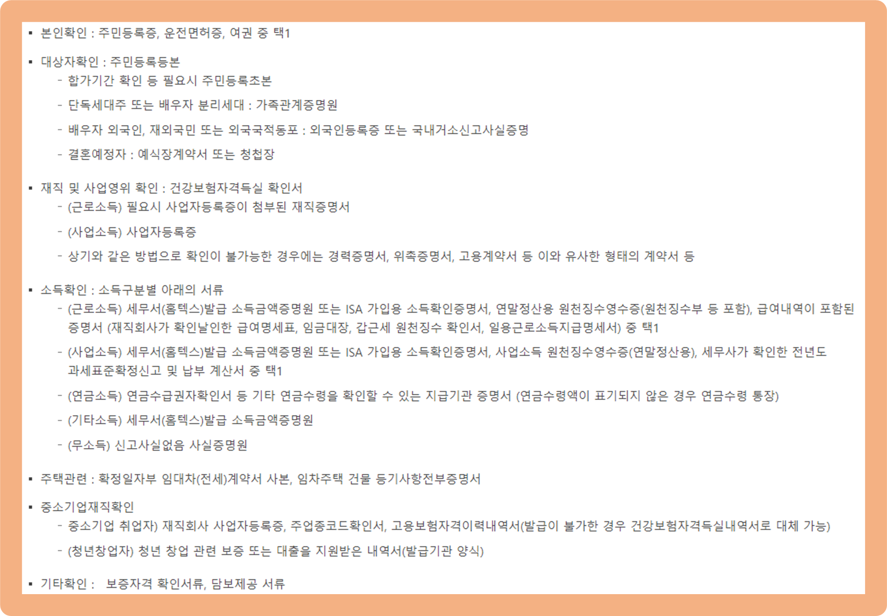 - 주민등록등본 등 대상자 확인을 위한 서류