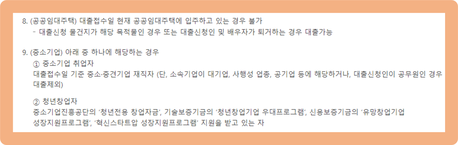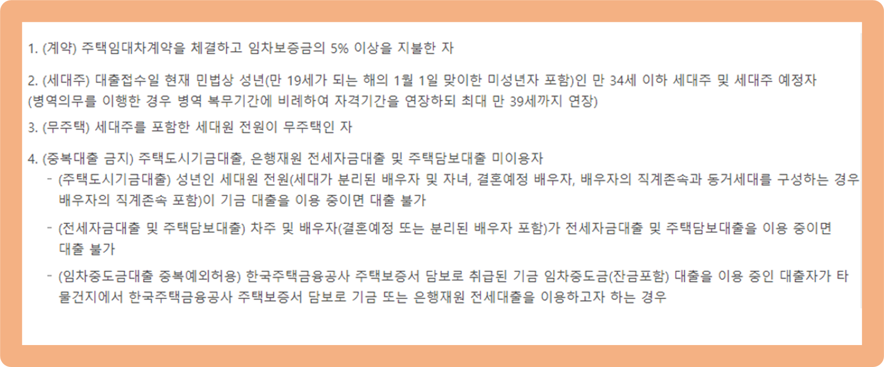 대출대상 자격 조건이 총 9가지가 있는데, 먼저 4가지의 조건부터 알아볼게요.