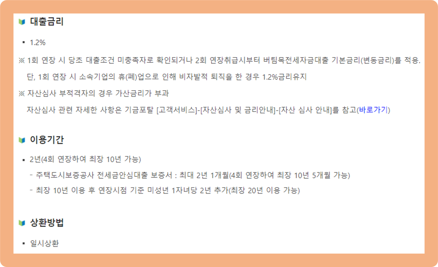 중기청 전세대출, 대출 금리, 이용기간, 상환방법