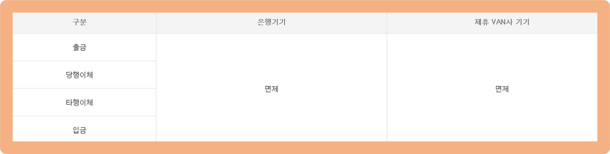 입금, 출금, 당행 및 타행 이체를 할 때 은행기기 or 제휴 ATM기 어느 것을 이용하더라도 수수료는 무료예요.