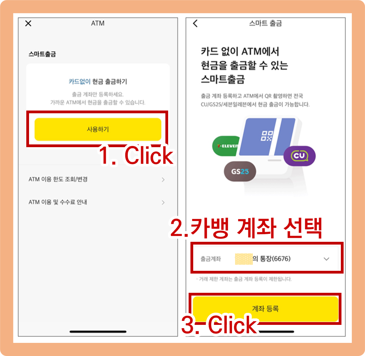 카카오뱅크 카드없이 ATM 출금방법, 계좌 등록