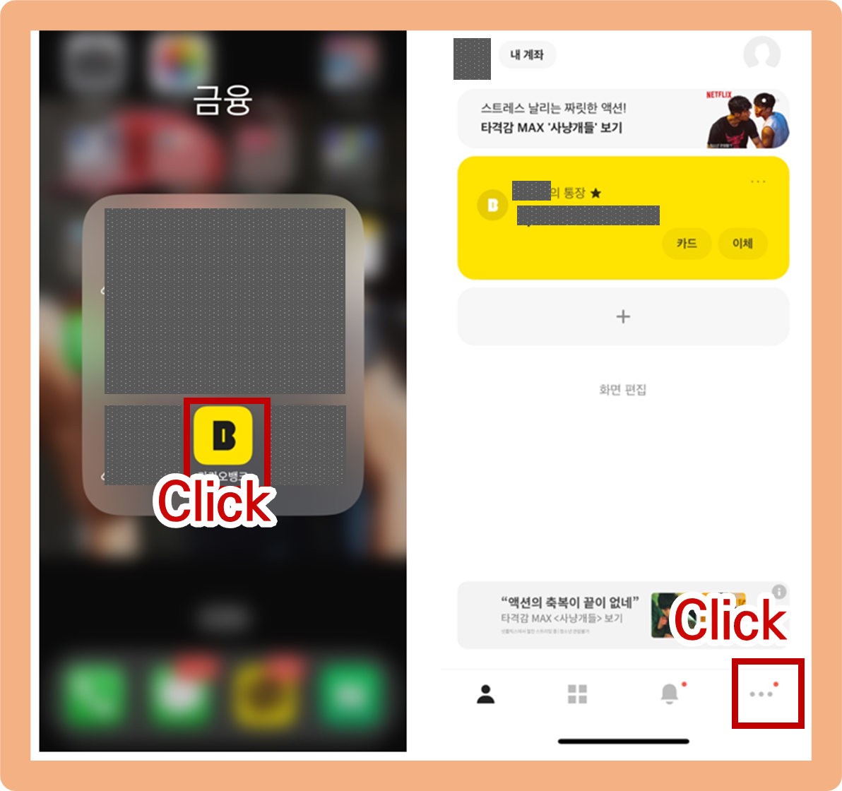 먼저 핸드폰에 설치되어 있는 카카오뱅크 어플을 실행해주시구요.