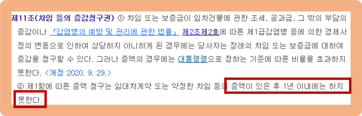 즉, 10년 동안 임대차 계약을 체결했다고 가정 시 임대인은 1년에 1번씩 총 10번의 보증금 및 월 임대료 증액 청구가 가능하다는 것이예요.