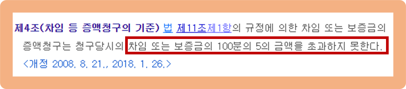그리고 보증금 및 월 임대료 인상을 청구할 때에는 기존 금액 대비 최대 5%까지만 가능해요.