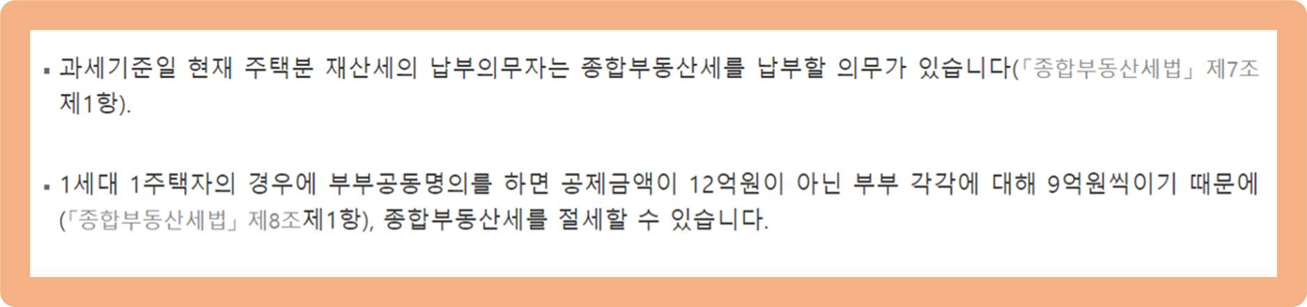 아파트 공동명의 변경 장점, 종합부동산세(종부세) 절감 효과