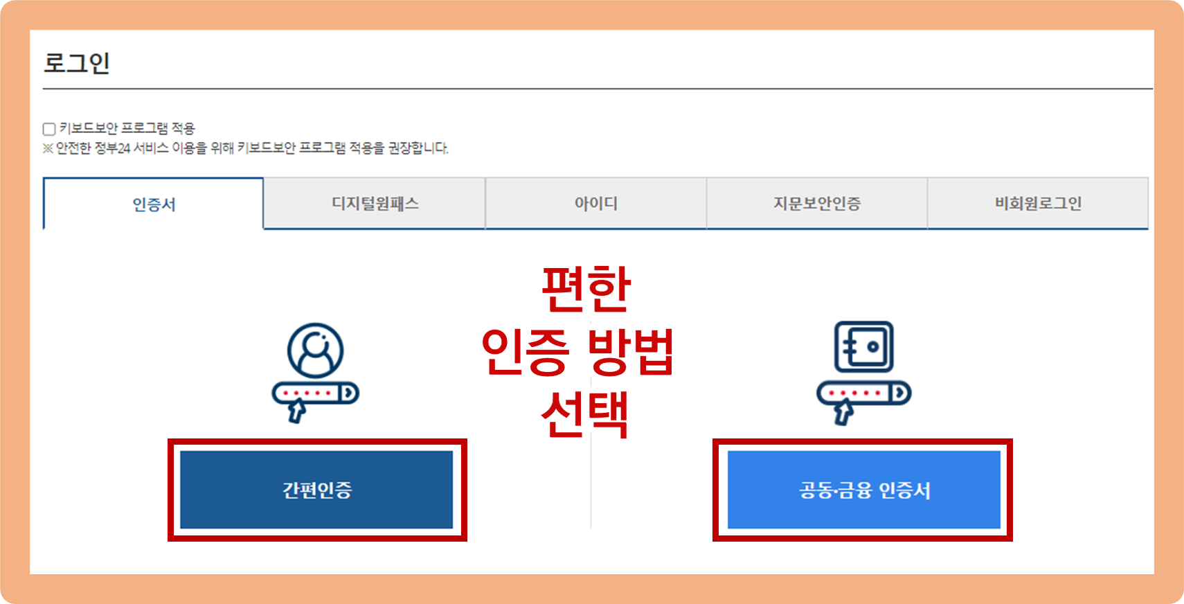 간편인증 및 공돔 및 금융 인증서 등 여러 인증 방법이 있는데, 여기서 여러분이 가장 편한 방법을 선택해서 진행해주세요.