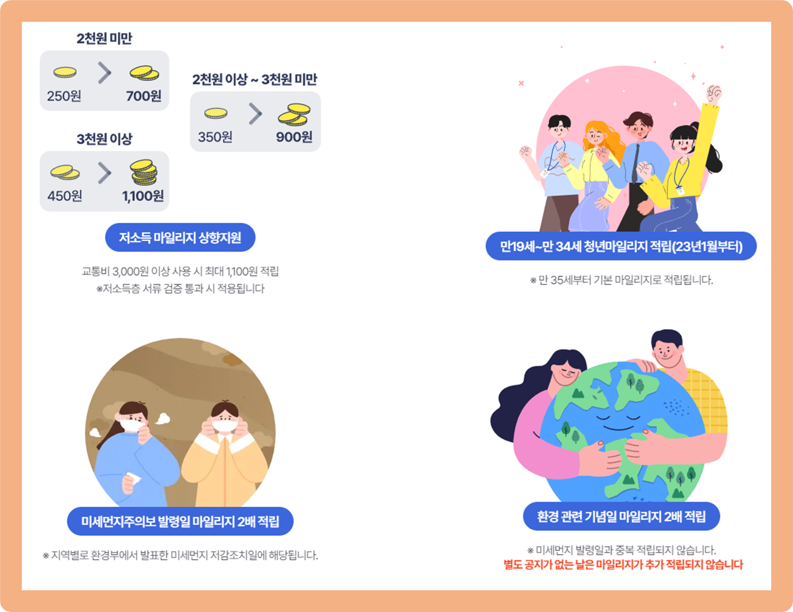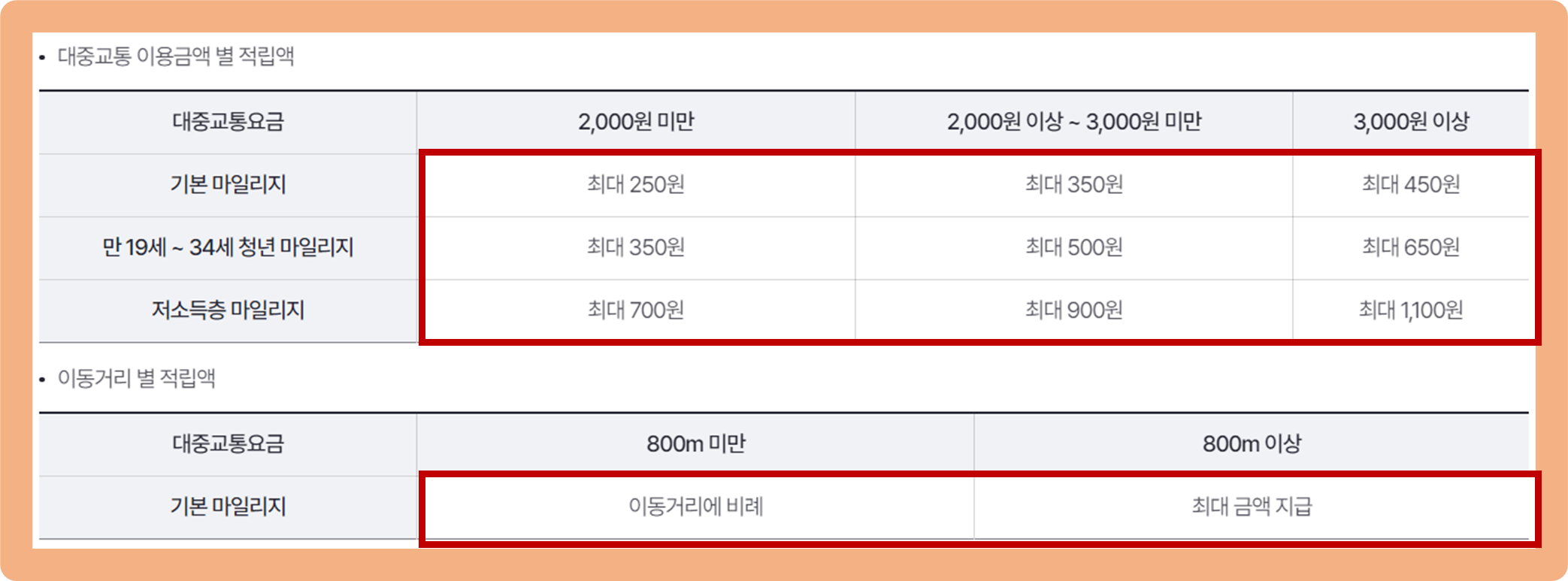 그리고 800m 미만 이용 시 이동거리에 비례한 마일리지가 적립되며, 800m 이상부터는 최대 적립 금액이 동일하게 적용돼요.