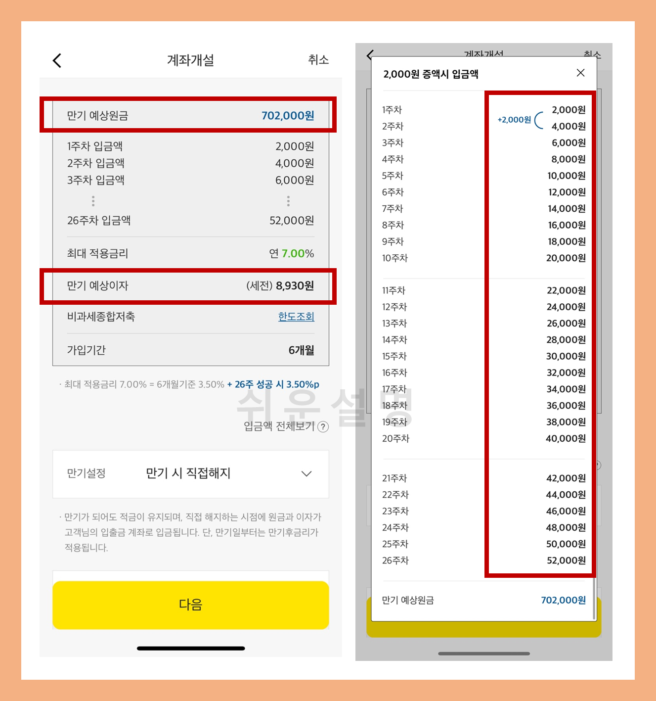 2천원 증액으로 적금 가입 시 26주차 납입 금액 : 52,000원