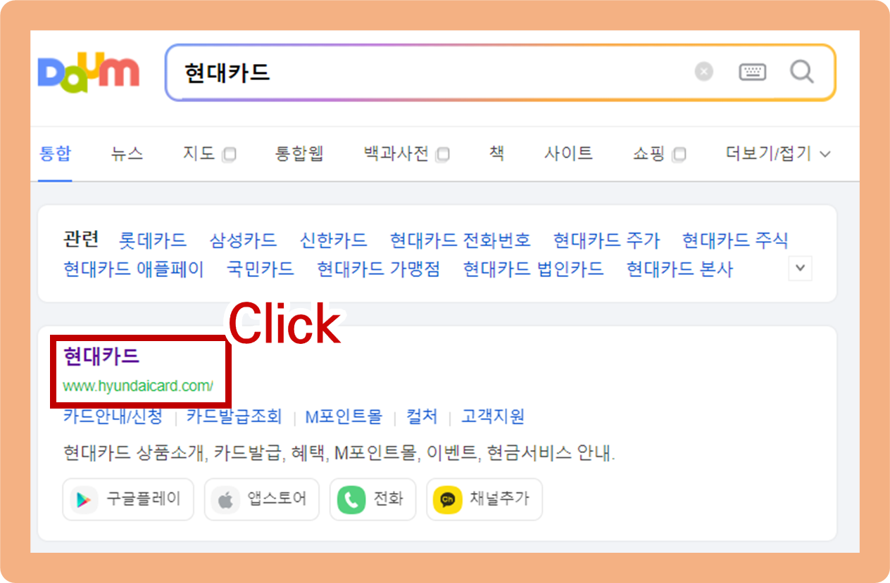 먼저 검색창에 현대카드라고 검색해주세요.