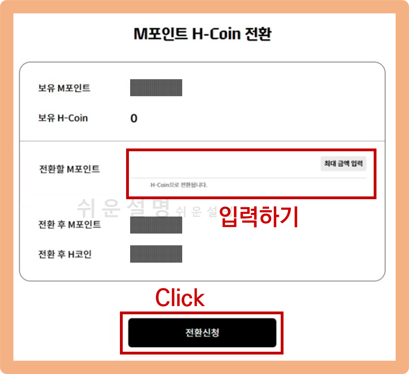 보유중인 포인트 중에서 전환하고 싶은 만큼 입력해주시구요.