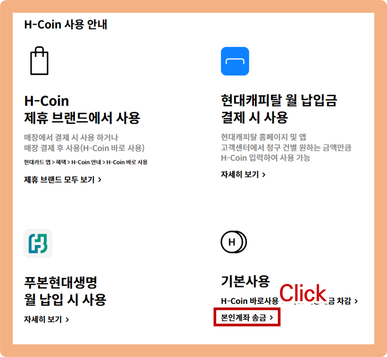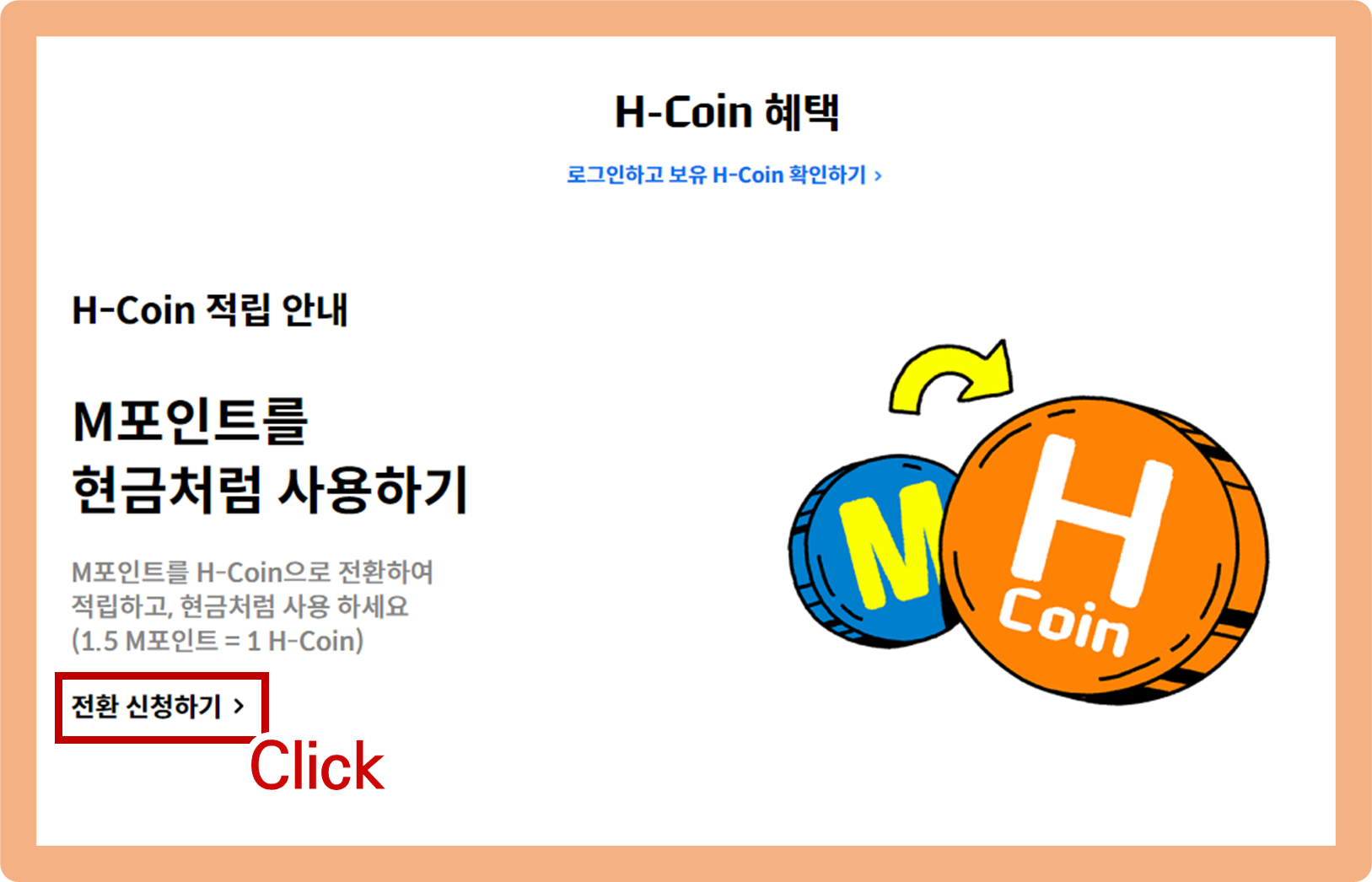 현대카드 M포인트 현금전환 방법. 혜택 > H-Coin 혜택