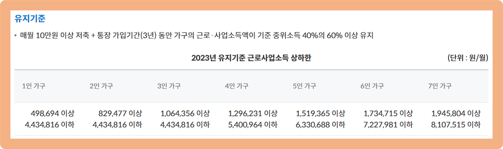 두번째. 3년동안 가구 소득이 기준 중위소득 40%의 60% 이상 유지하기