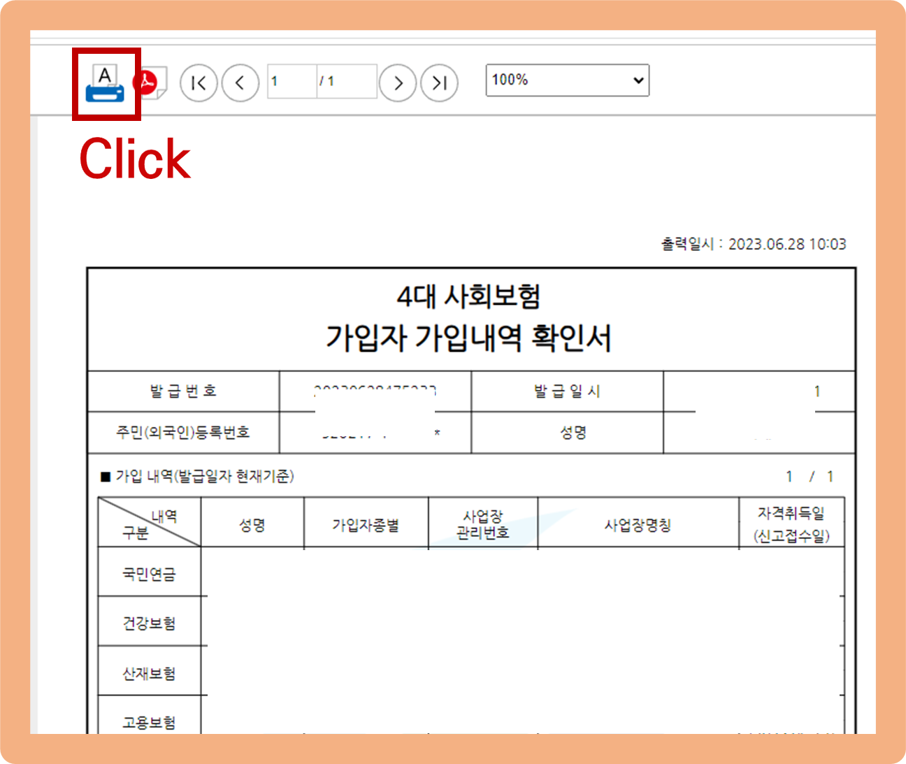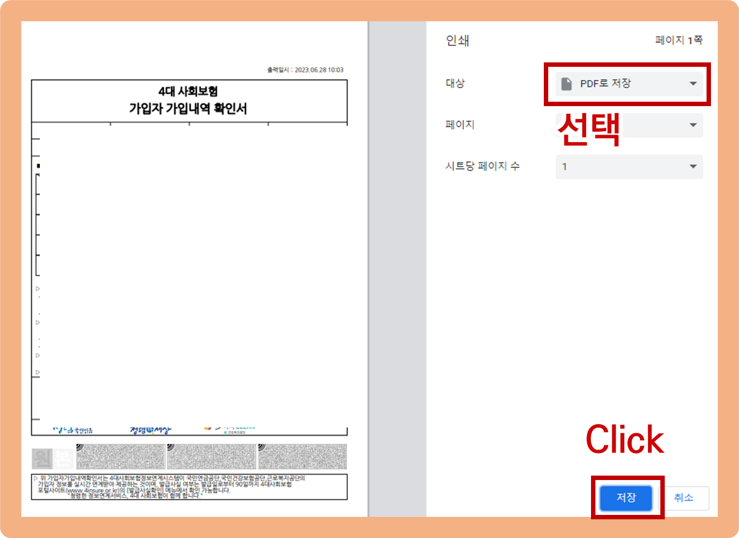 4대보험 가입내역확인서 발급 방법, PDF 저장까지