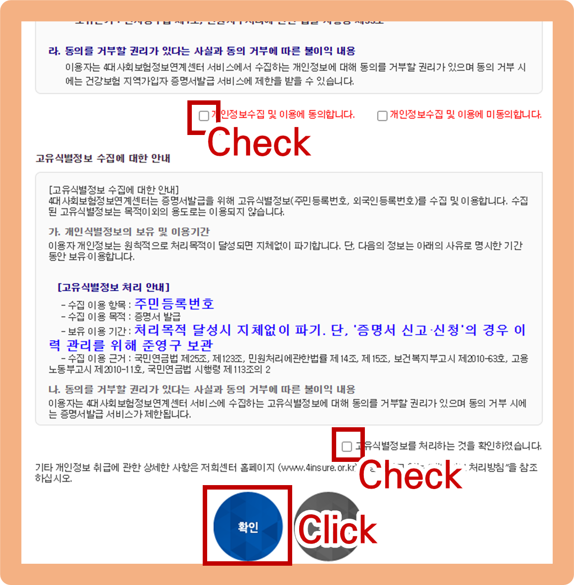 4대보험 가입내역확인서 발급 방법, 개인정보 수집 등 동의