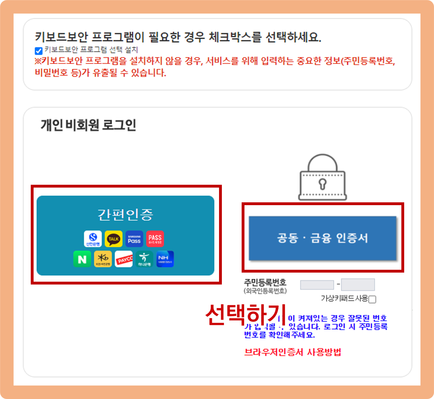 개인 정보 이용 동의에 체크해주시고, 고유식별정보 수집을 확인한다는 것에 체크해주시구요.