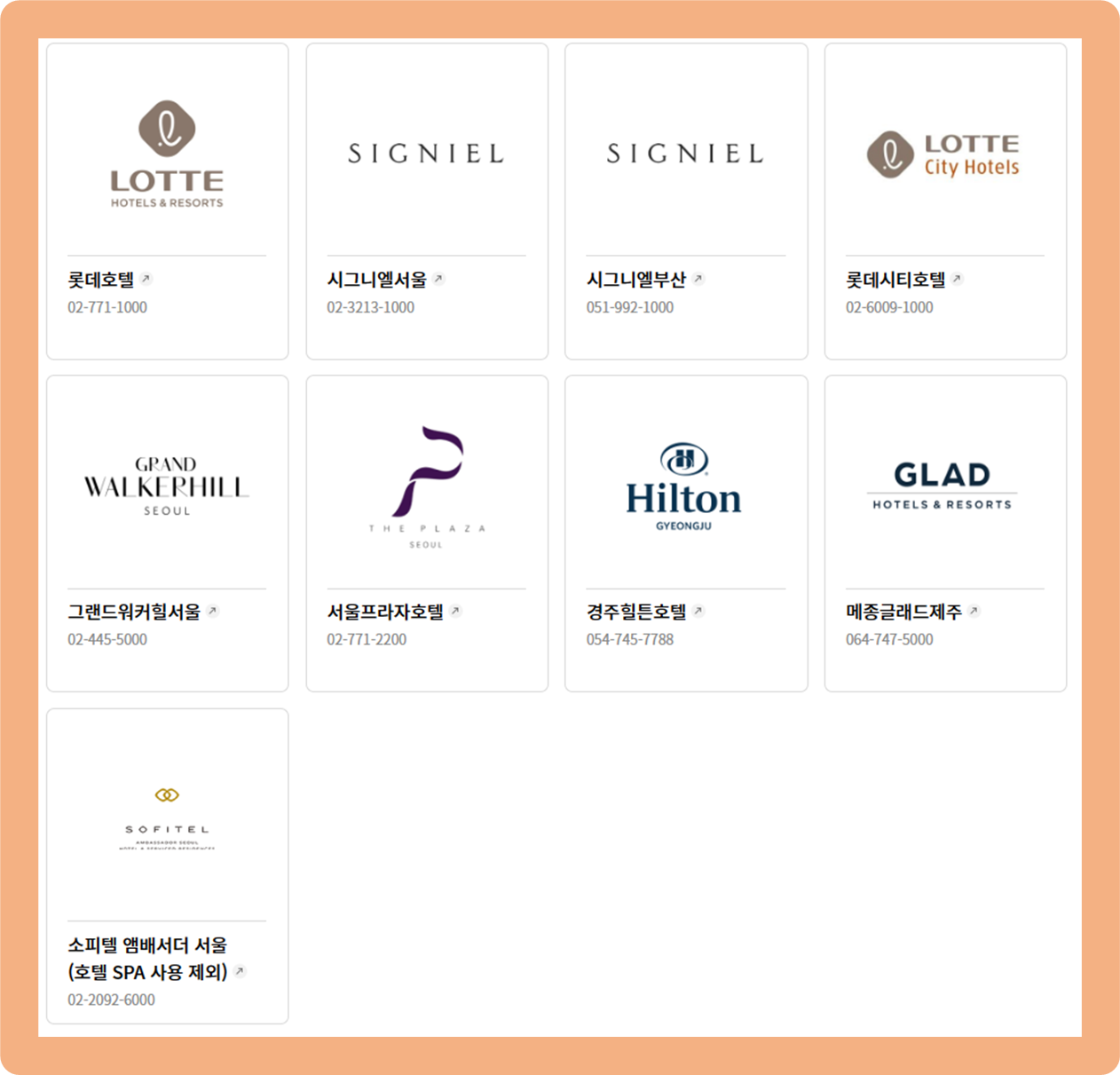 롯데, 시그니엘, 그랜드워커힐, 메종글래드등 호텔을 이용할 시 사용할 수 있어요.