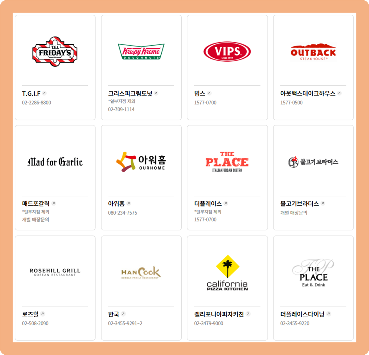 위 매장 외에도 유가네닭갈비, 반포식스 등 다양한 매장에서 사용 가능해요.
