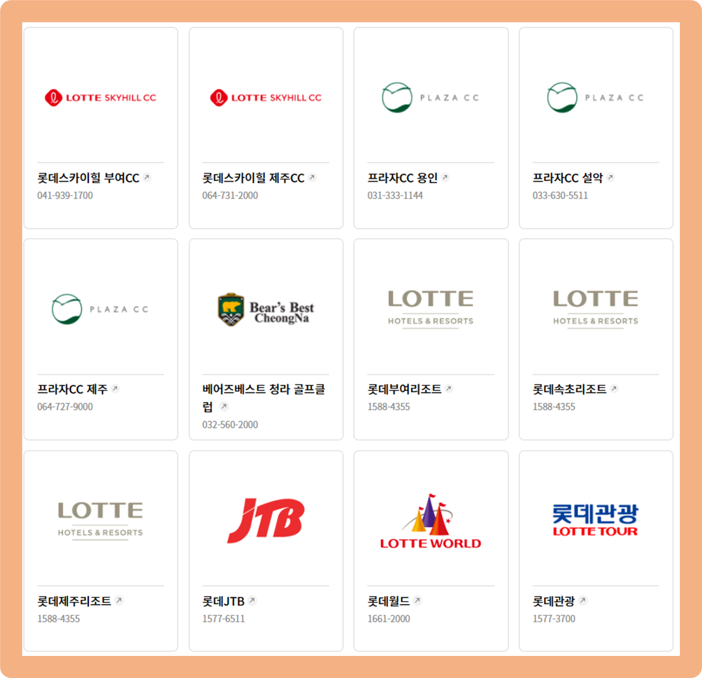롯데리조트, 프라자CC 용인/설악/제주, 롯데스키이힐 부여CC/제주CC 등 골프장 및 리조트에서도 롯데상품권을 통해 결제가 가능해요.