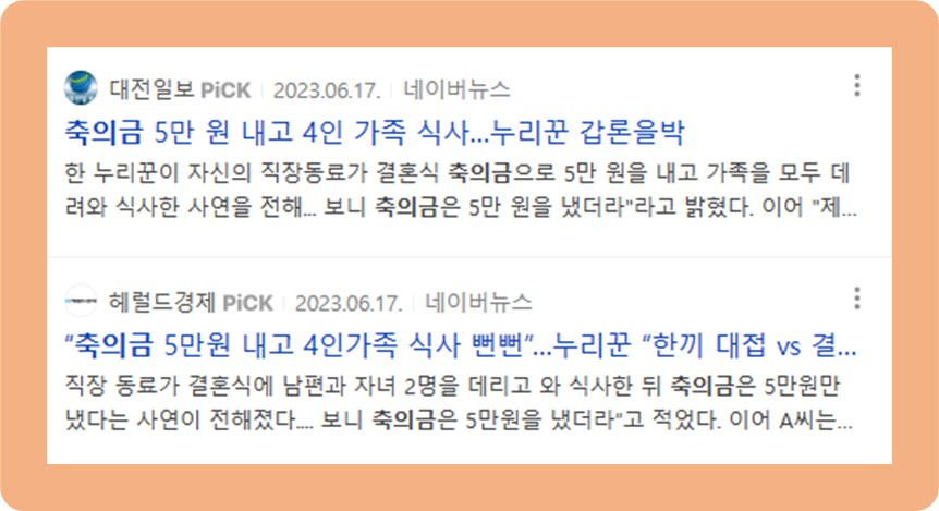 - 얼굴만 아는 사이 or 직장 타 부서 동료 직원 : 5만원
