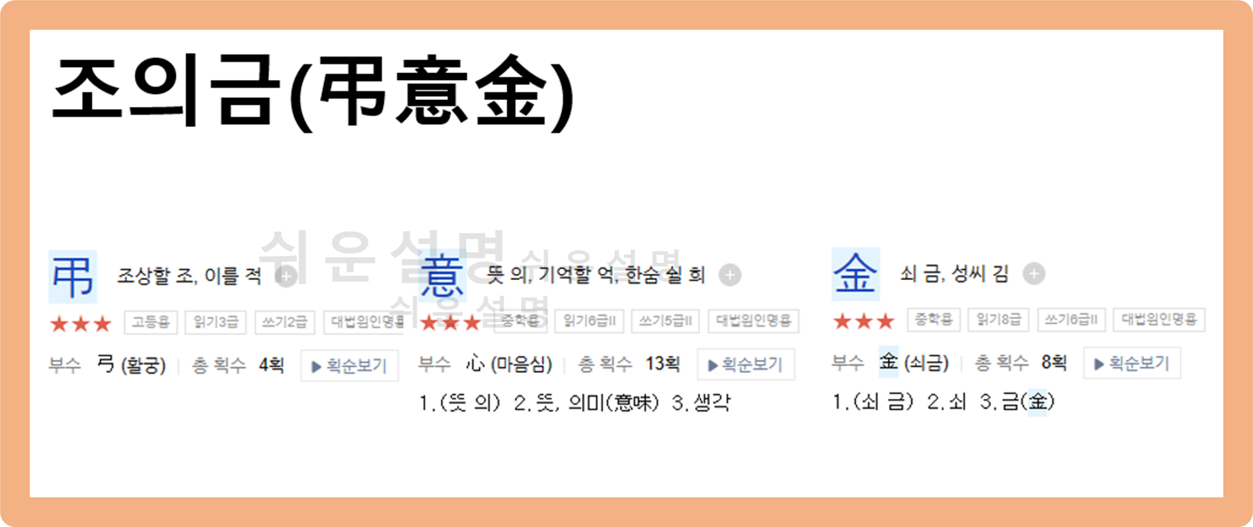 '조의'는 한자 그대로 '죽은 이를 기억하며 슬픈 마음'이라는 의미를 가진 단어에요.