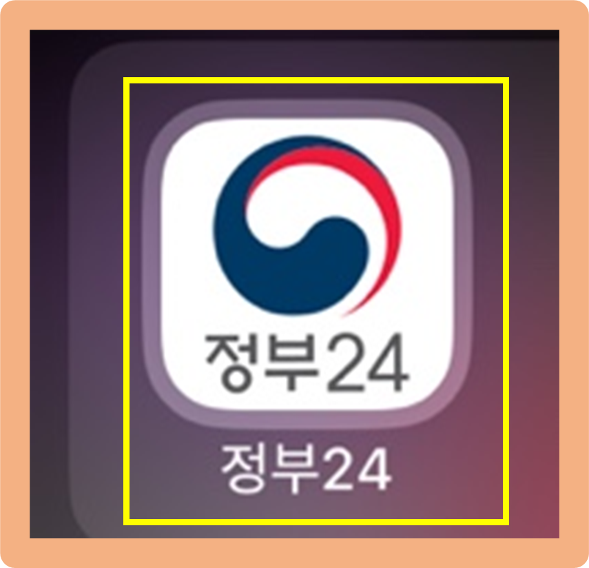 정부24 어플을 실행해주세요. 어플이 없으신 분들은 플레이스토어 또는 앱스토어에서 다운로드하시면 돼요.