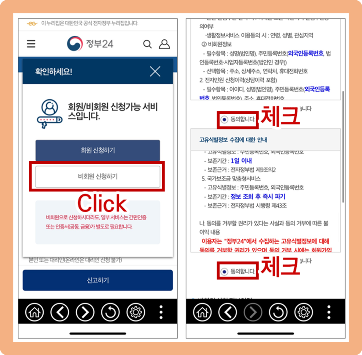 모바일 전입신고 신청 방법. 비회원 신청하기