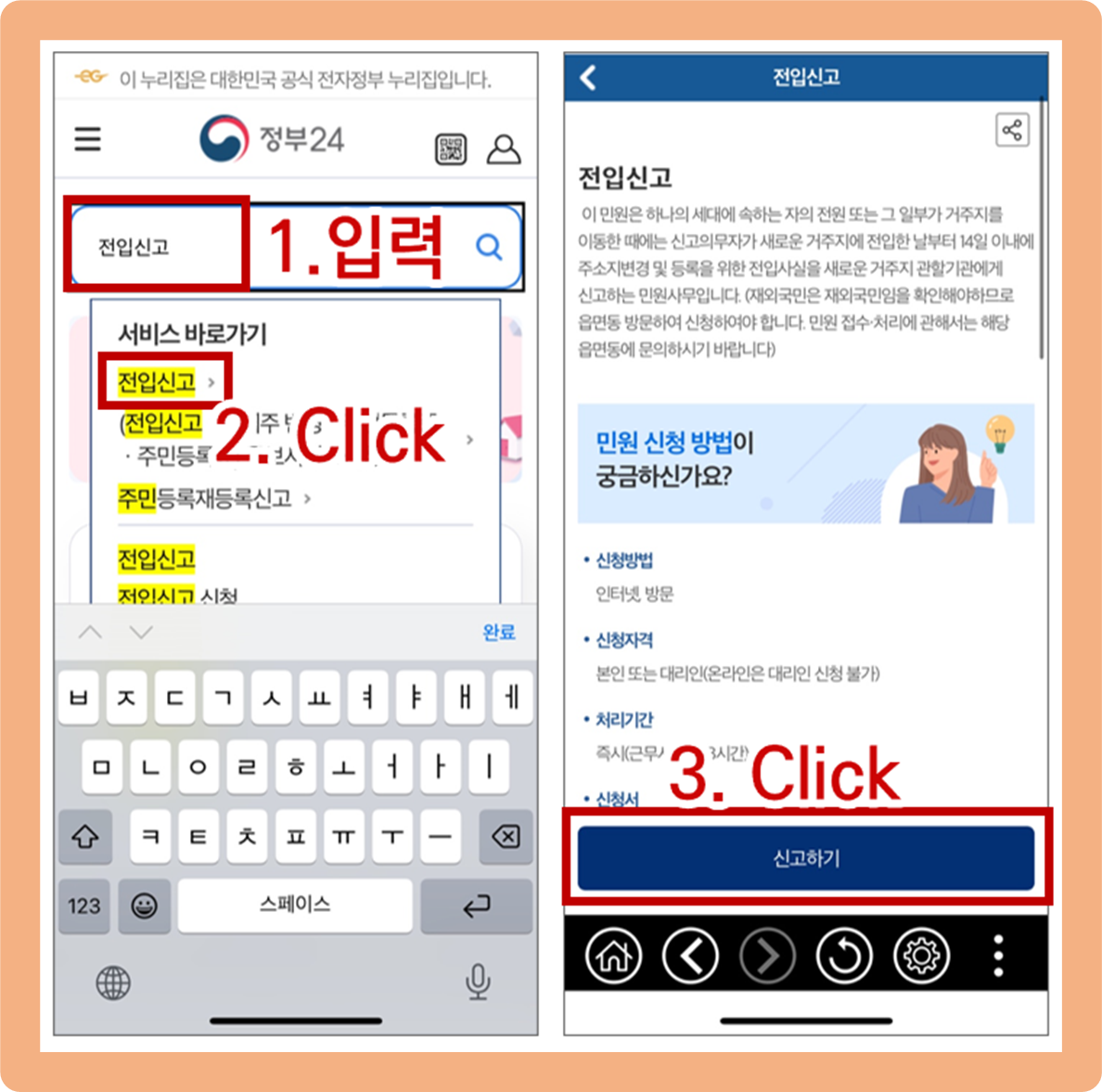 모바일 전입신고 신청 방법. 정부24 어플 실행