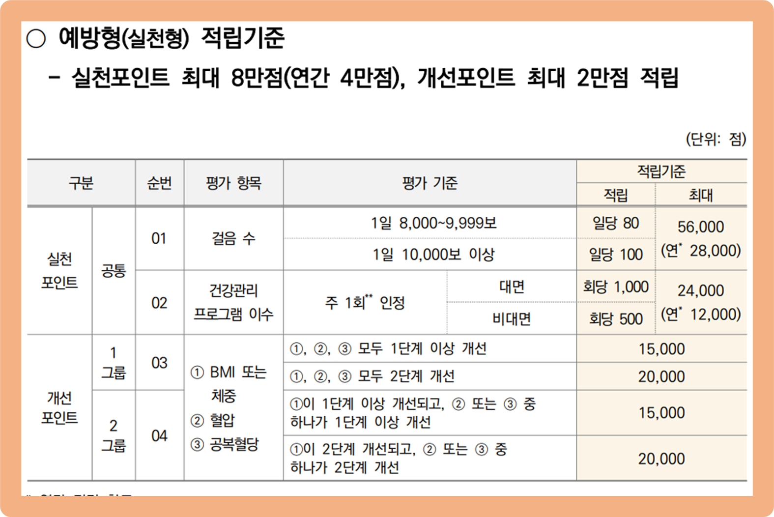 건강생활 실천지원금제. 예방형 포인트 적립 기준
