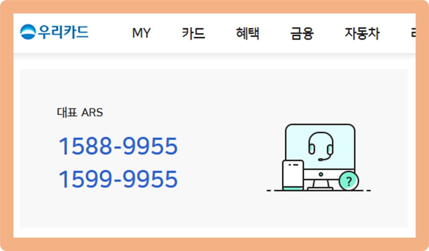 우리카드 공식 홈페이지에 접속하면 1588 9955는 고객센터 대표 번호라고 안내되어 있어요. 다시 말해, 절대 스팸 번호가 아니라는 것말이죠.