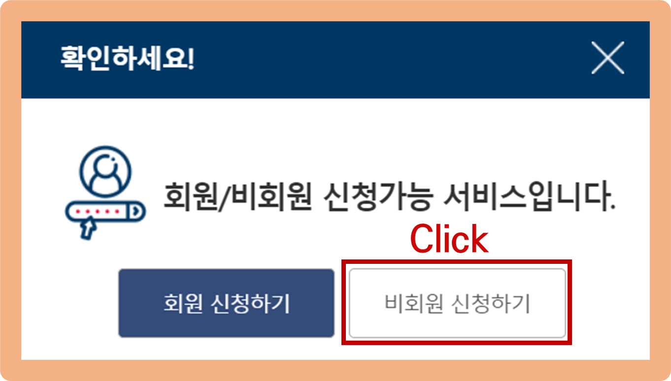 저는 '비회원 신청하기'로 진행할게요. 이미 회원이신 분들은 '회원 신청하기'를 클릭해서 진행하시면 돼요.