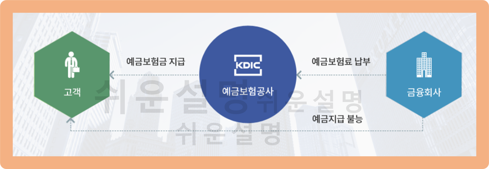 그리고 금융기관이 파산 등의 사유로 예급 지능이 불가능한 상황이 발생하면, 예금보험공사가 고객에게 금융기관(은행) 대신 보험금을 지급해주는 것이죠.