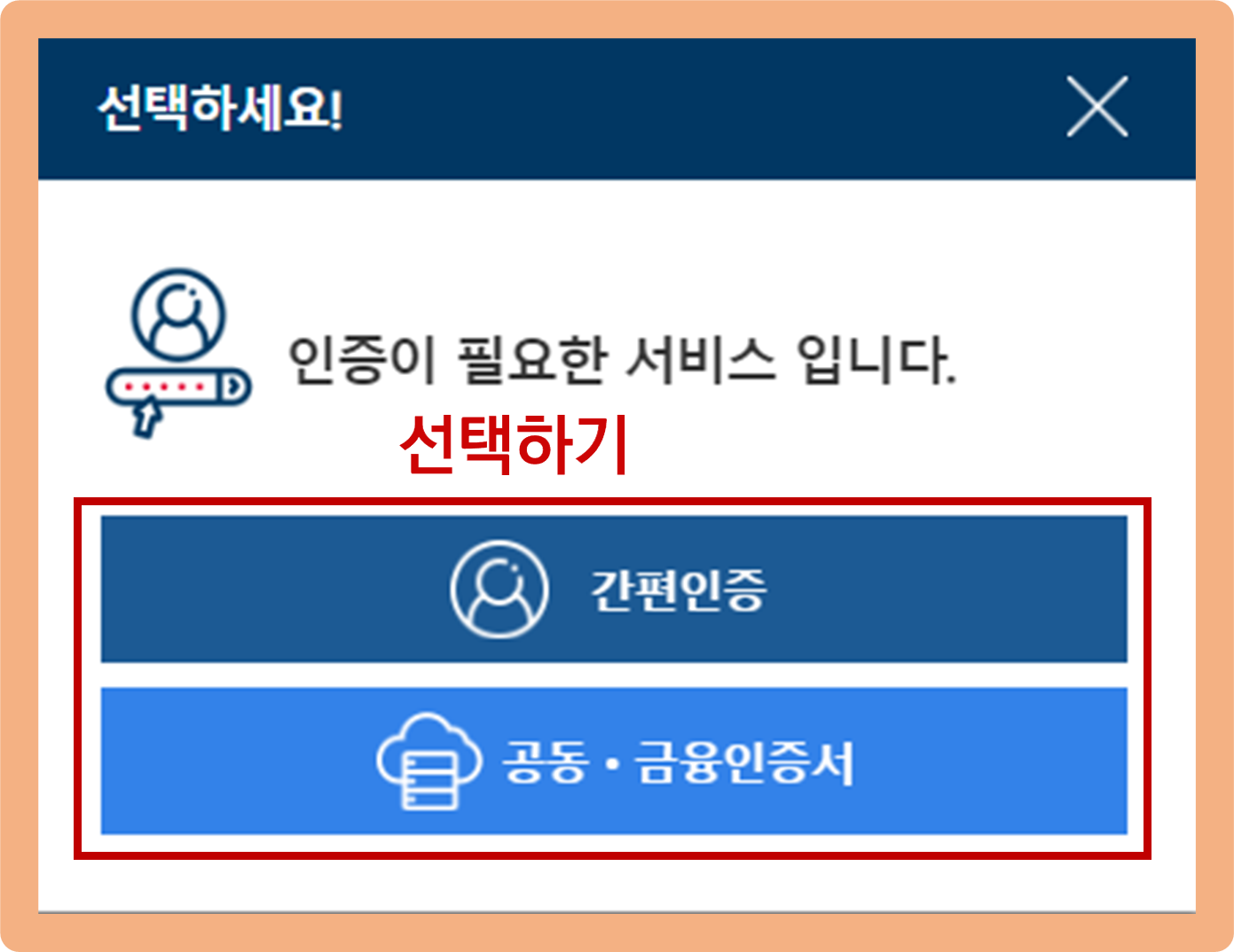간편인증 또는 공동 및 금융인증서 중 편한 방법을 선택해 진행해주시면 돼요.