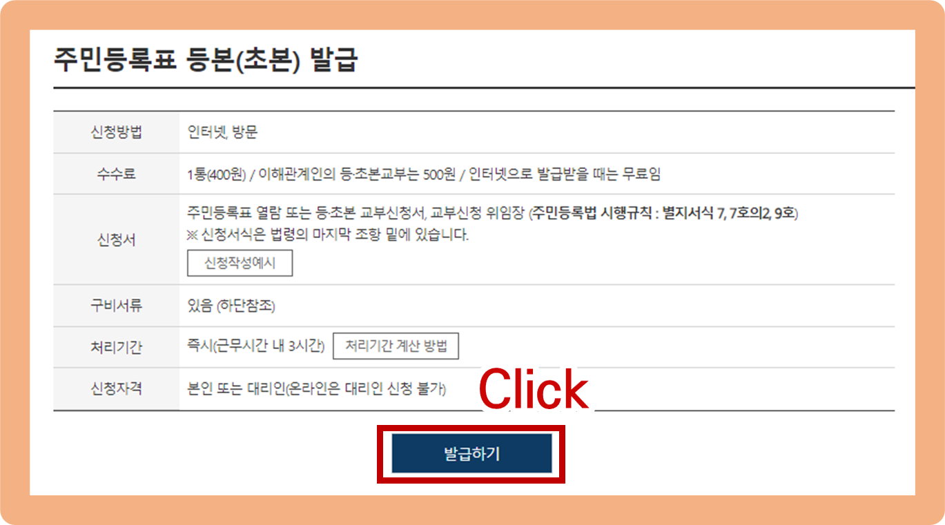 주민등록초본 인터넷발급 방법. 발급하기 버튼