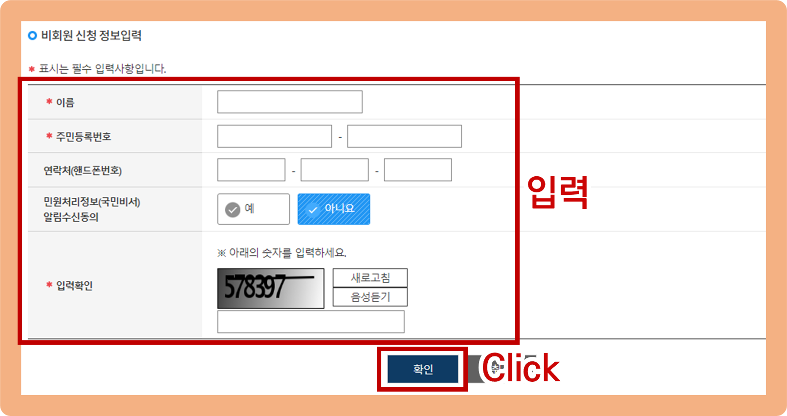비회원으로 신청하신 분들은 인적사항을 입력해줘야 돼요.