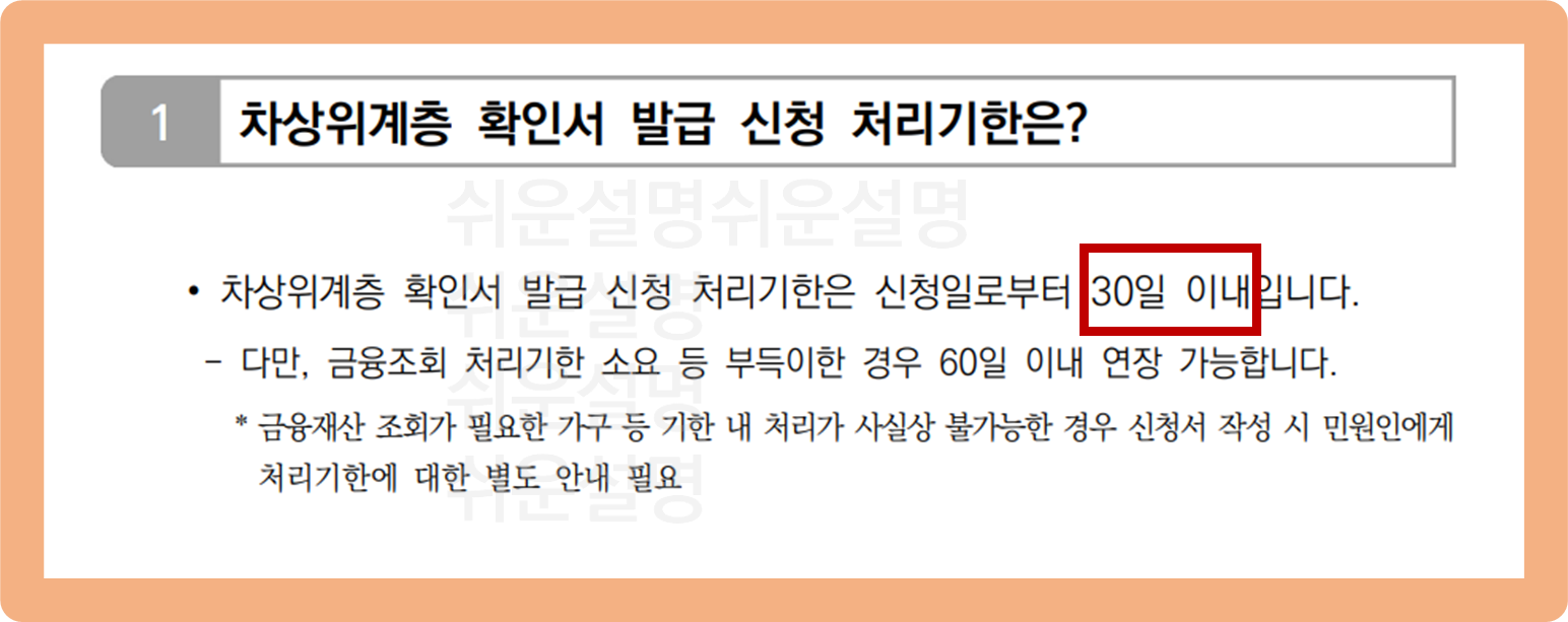 차상위계층 확인서 발급 신청방법. 처리 기한