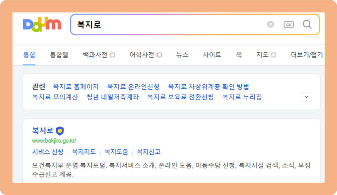 검색창에 '복지로'를 검색 후 공식 사이트에 접속해주세요.