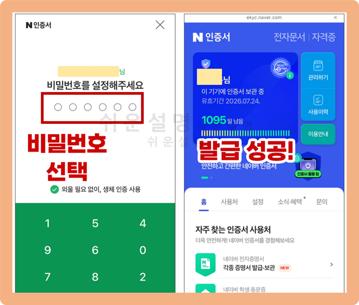 네이버 공동인증서 발급방법. 비밀번호 설정하면 발급 완료