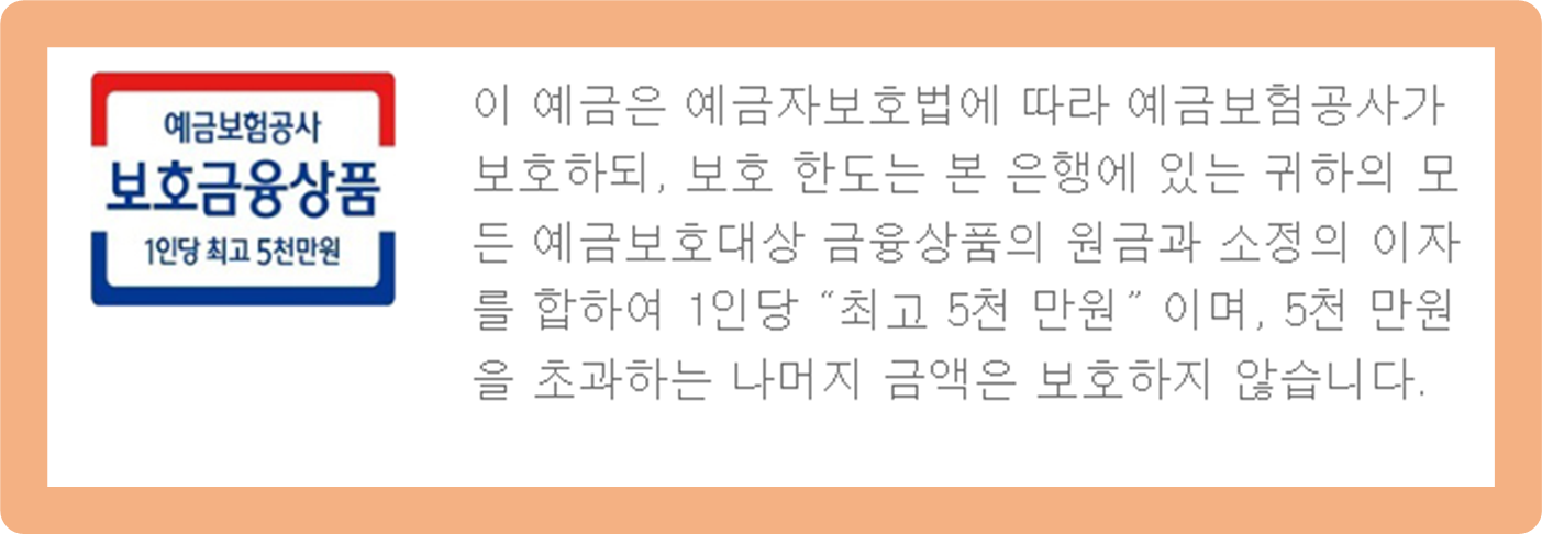 sc제일은행 상품의 경우 다른 1금융권 은행과 동일하게 5천만원 한도내에서 예금자보호법에 따라 예금을 보호받게 돼요.