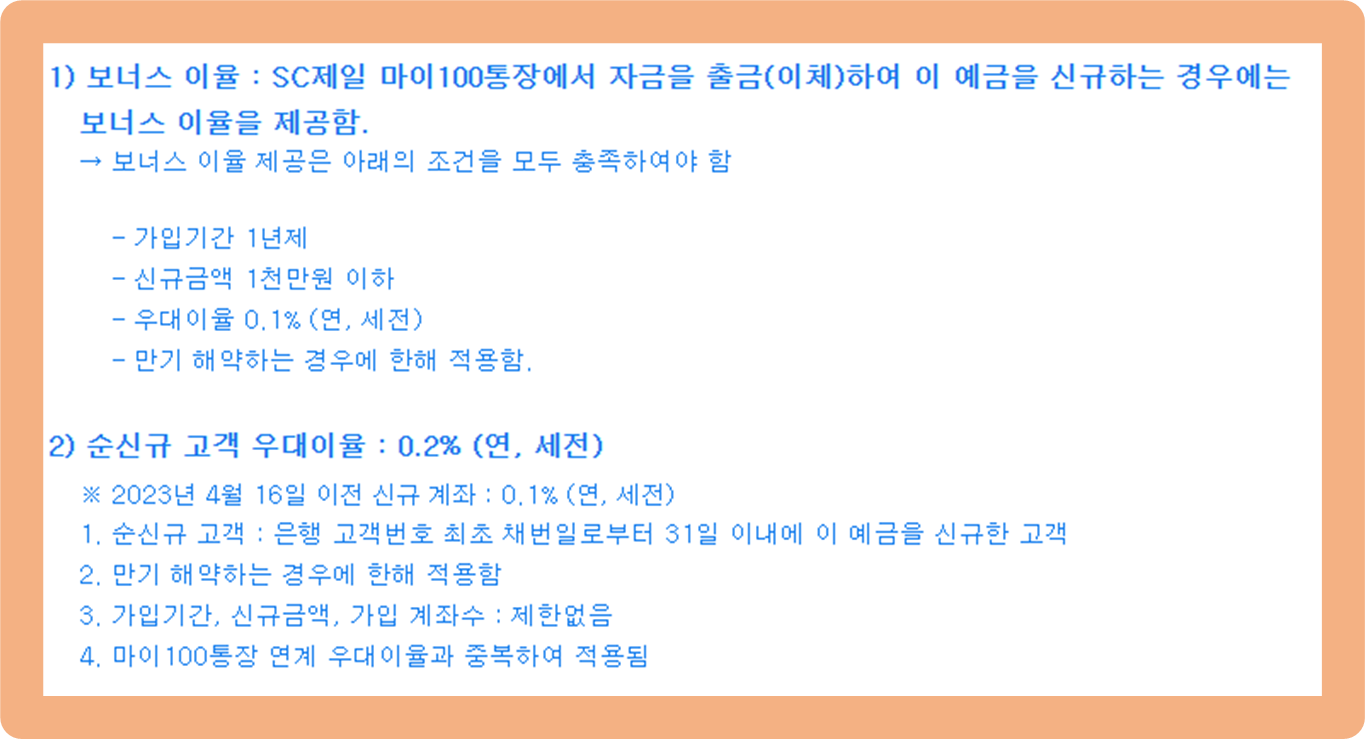 ※기본이율은 신규일 당시 sc제일은행 공식 홈페이지에 게시된 가입 기간별 이율을 말해요.