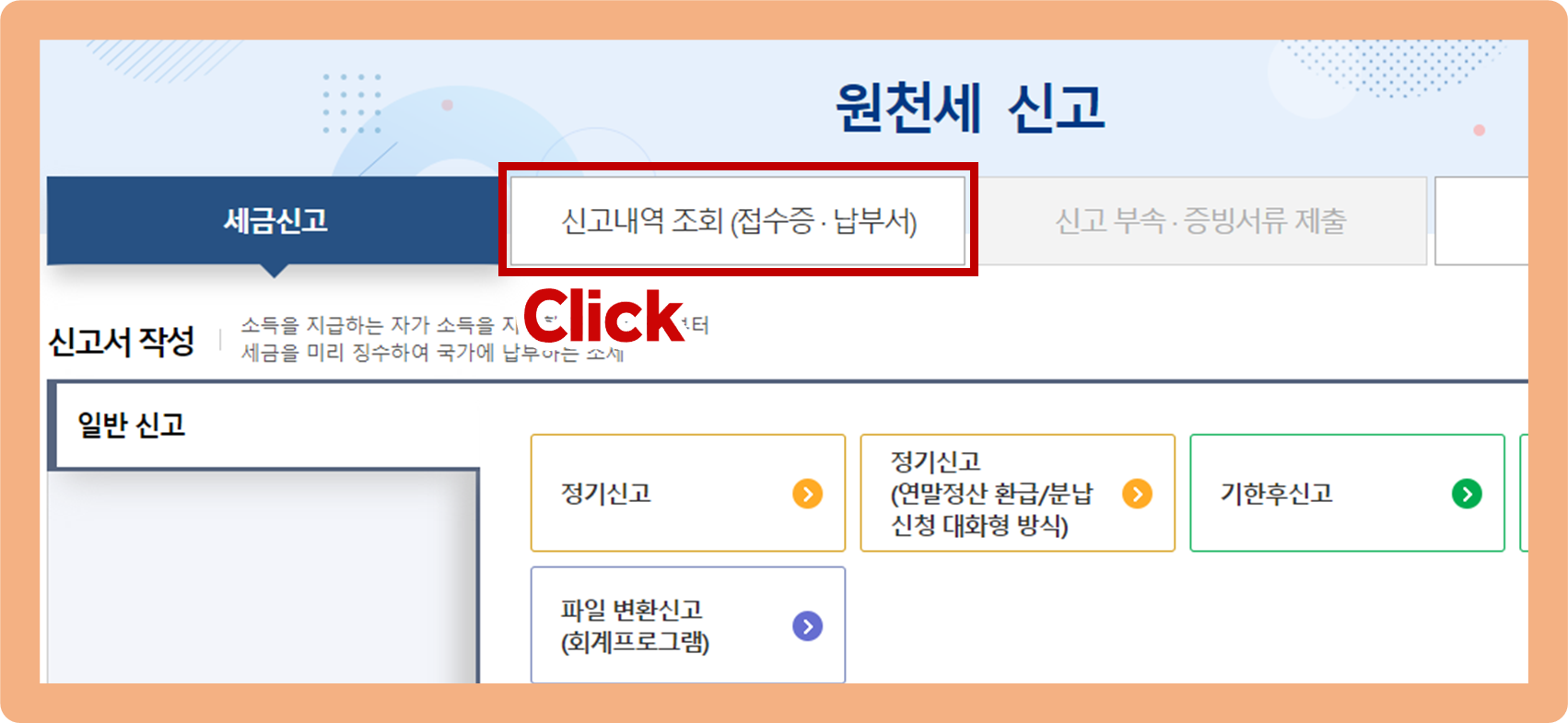 [원천서 신고내역(원천징수이행상황신고서) 발급 방법]