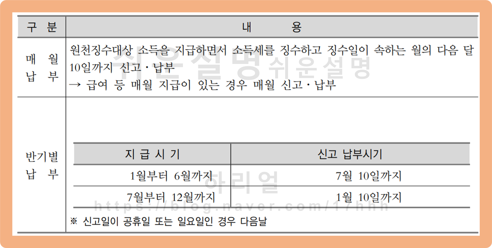 - 지급시기 1월부터 6월까지 ▶ 7월 10일까지 신고 및 납부