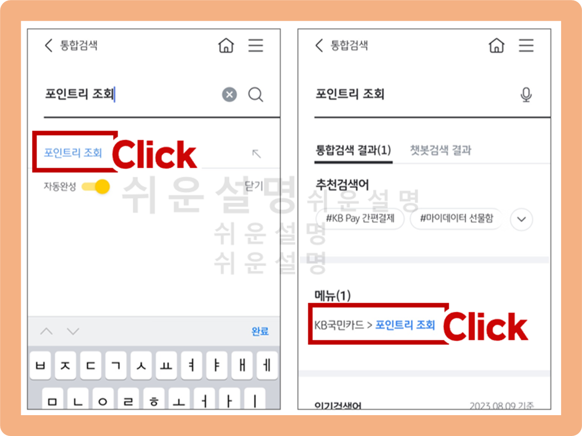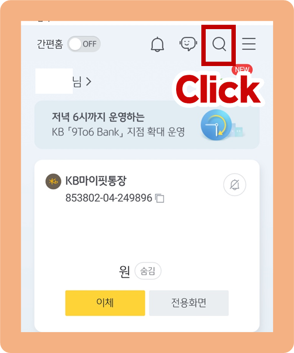 KB포인트리 현금 전환 방법 - 돋보기 모양 클릭
