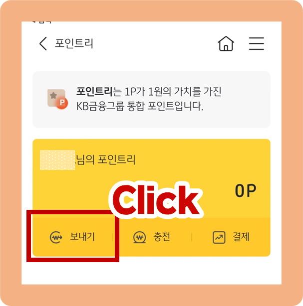 여러분은 적립된 포인트리를 현금으로 전환하기 위해 '보내기'버튼을 클릭해주세요.