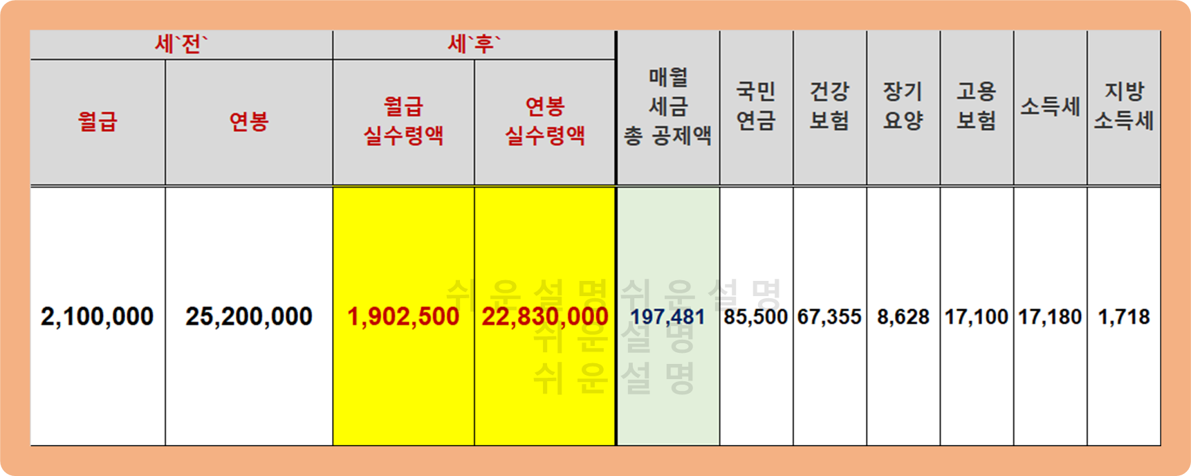 월급 210만원(세전 연봉 2,520만원) 실수령액에 대해 알아볼게요.