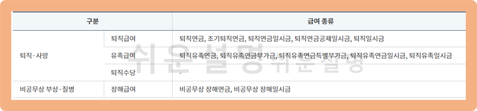- 비공무상 부상 또는 질병의 경우 : 장해급여