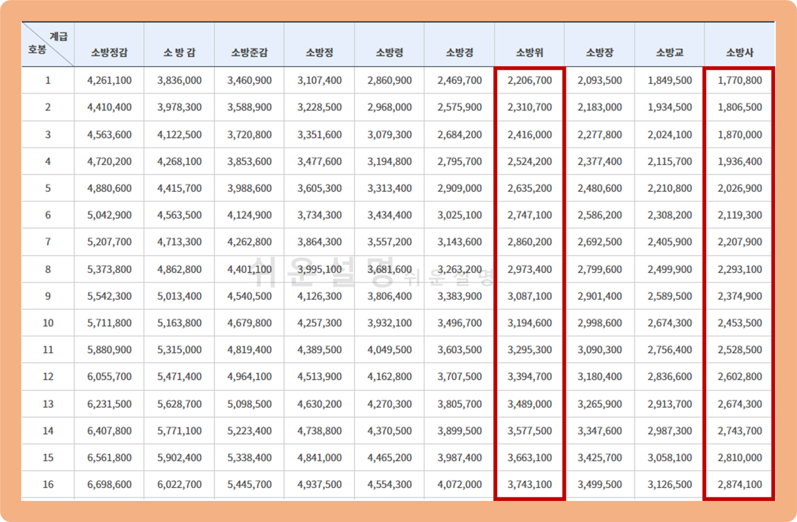 023년 소방 공무원 월급, 봉급표에요.