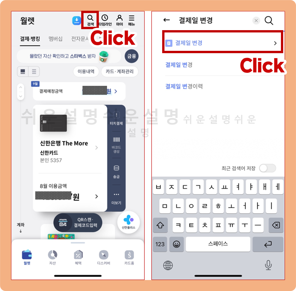 신한카드 결제일 변경 방법 - 결제일 변경 검색