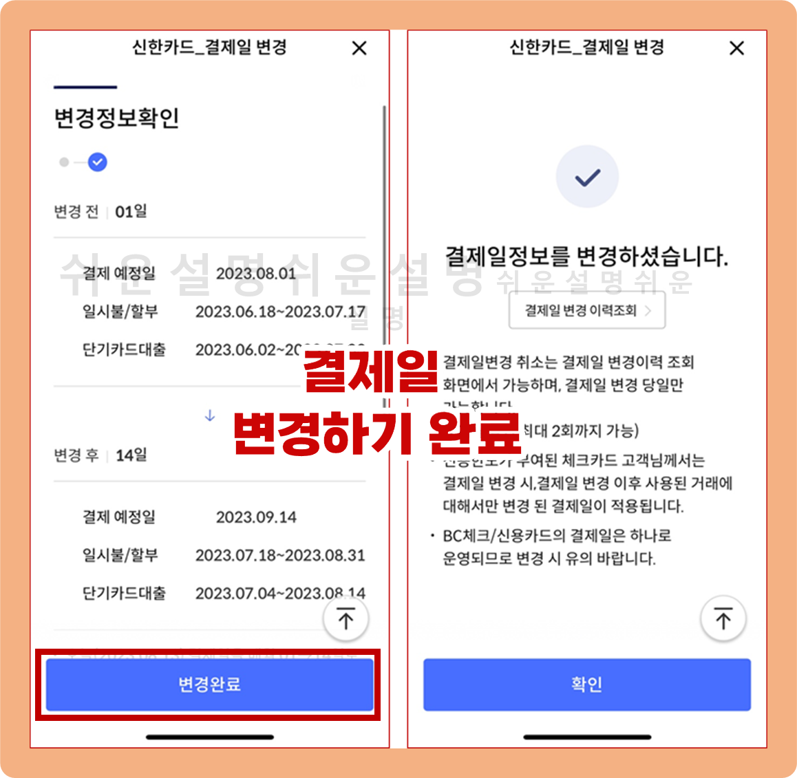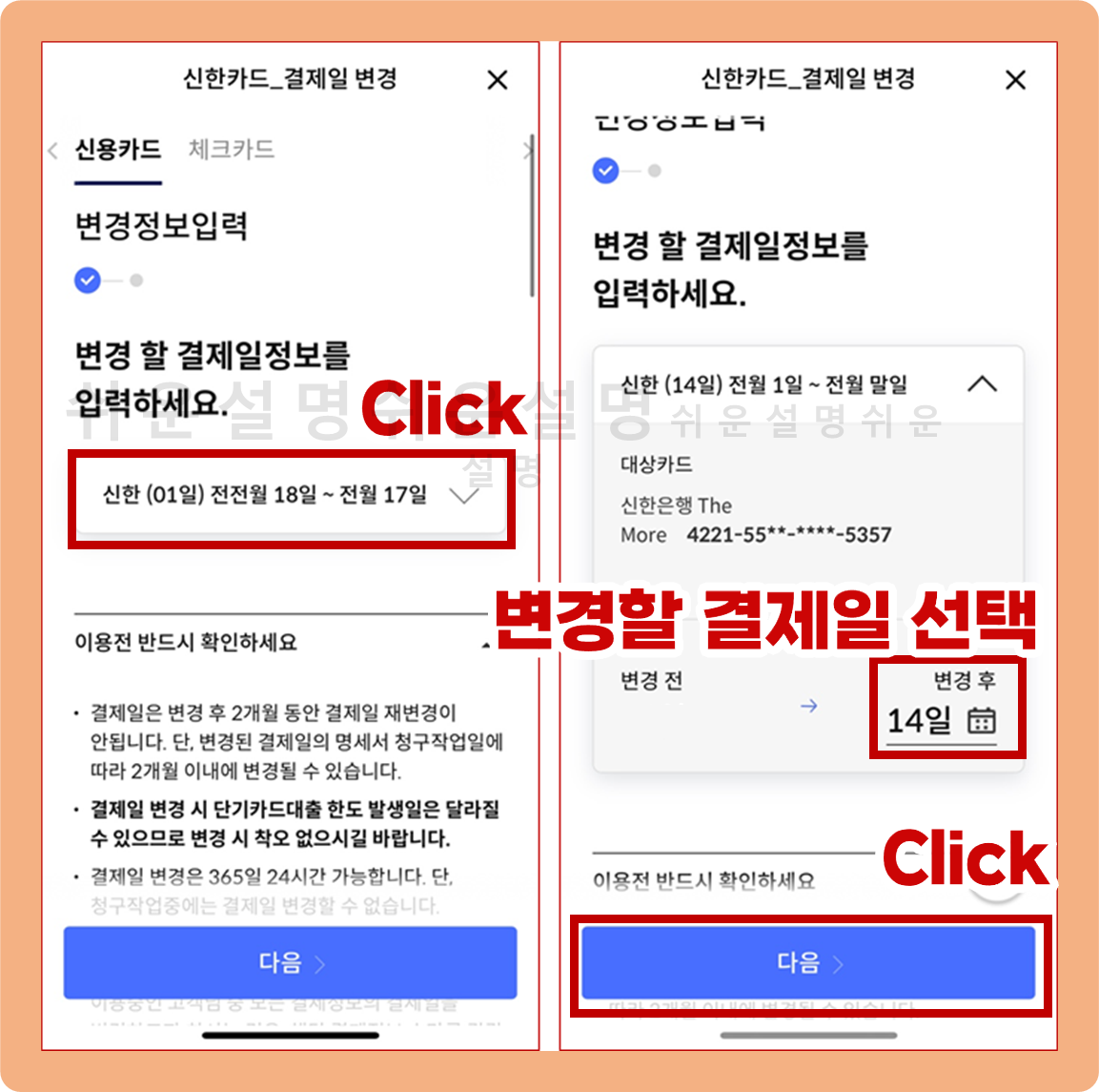 신한카드의 결제일별 이용기간을 확인하고, 결제일을 변경하는 방법을 설명드릴게요.